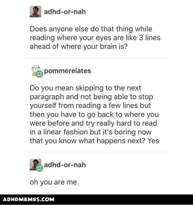 in Help, Hyperfocus, Life Ain't Easy, Memory, Shame It just me? 504 Views 2 Votes 0 Comments 0 shares What do you think? 2 Points Upvote Downvote Leave a ReplyCancel replyYour email address will not be published. Required fields are marked *Comment * Name * Email * Website Post Comment Δ Reply with GIF